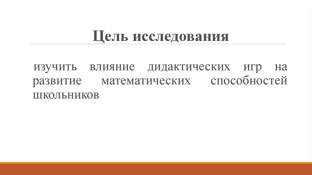 Цель исследованияизучить влияние дидактических игр на