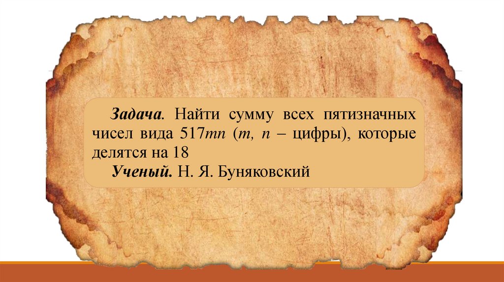 Задача. Найти сумму всех пятизначныхчисел вида 517mn (т, n – цифры), которые