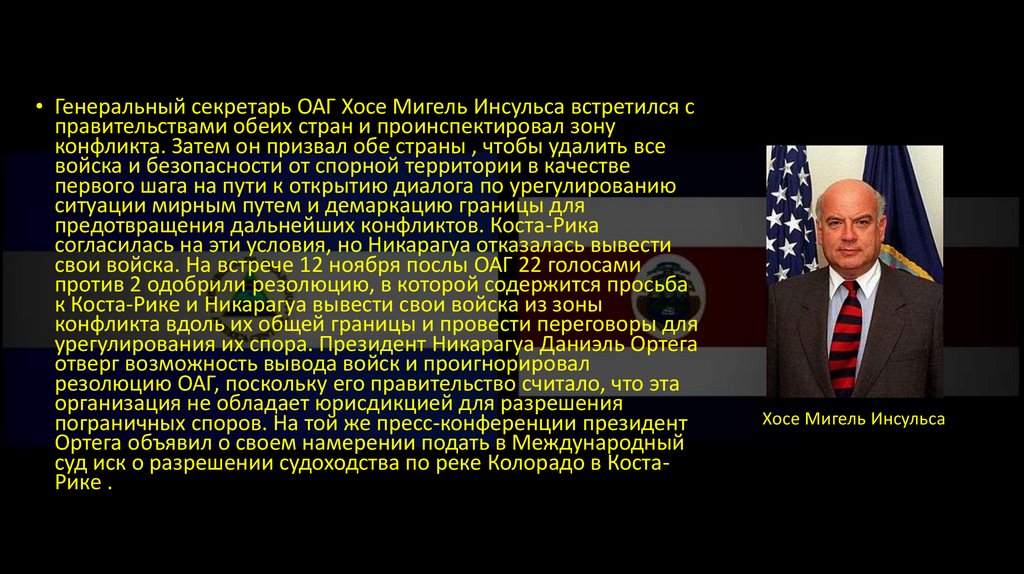• Генеральный секретарь ОАГ Хосе Мигель Инсульса встретился справительствами обеих стран и проинспектировал зону