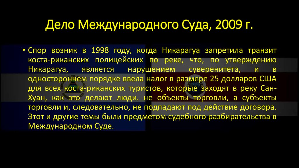 • 2. Никарагуа имеет право потребовать от коста-риканских судов и их пассажиров