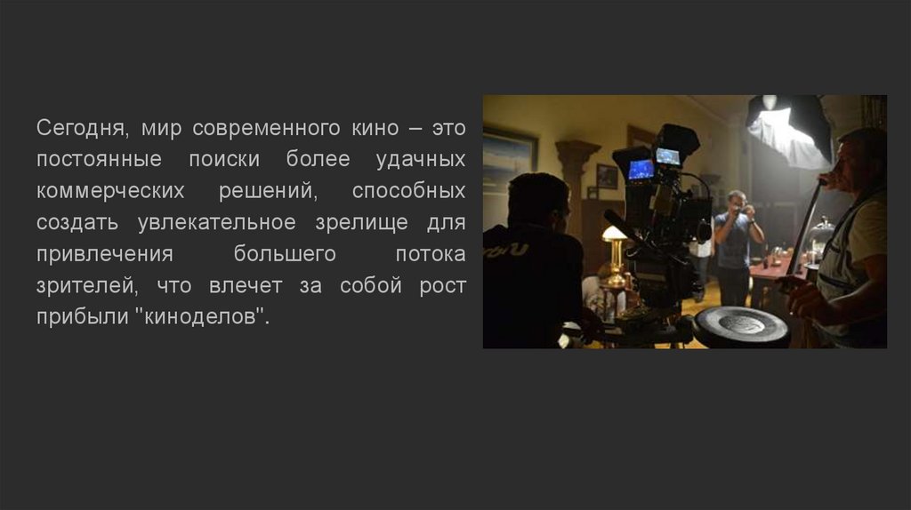 Сегодня, мир современного кино – этопостоянные поиски более удачных