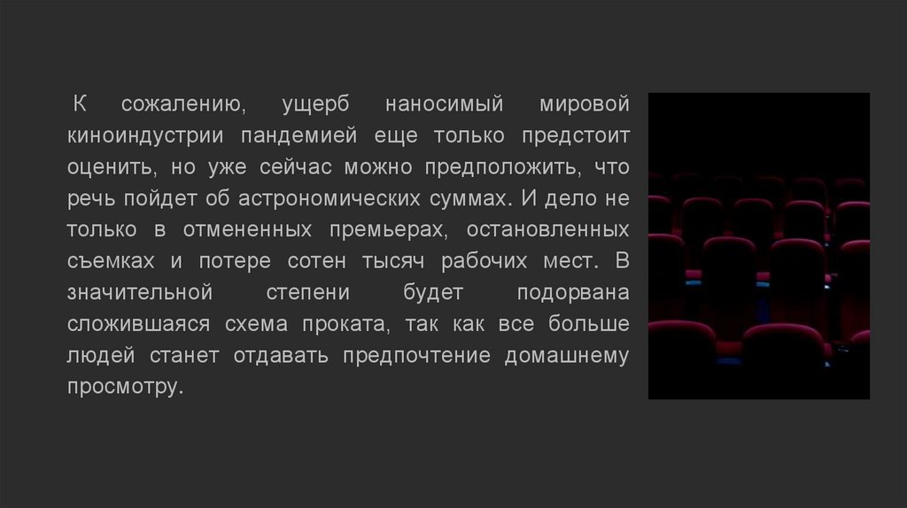 киноиндустрии пандемией еще только предстоит