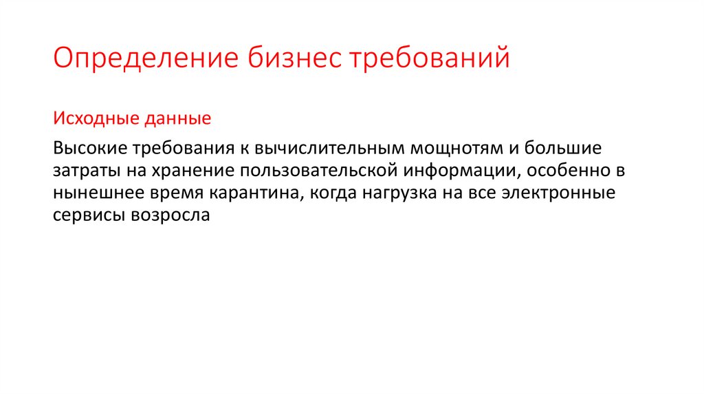 Определение бизнес требованийИсходные данные
