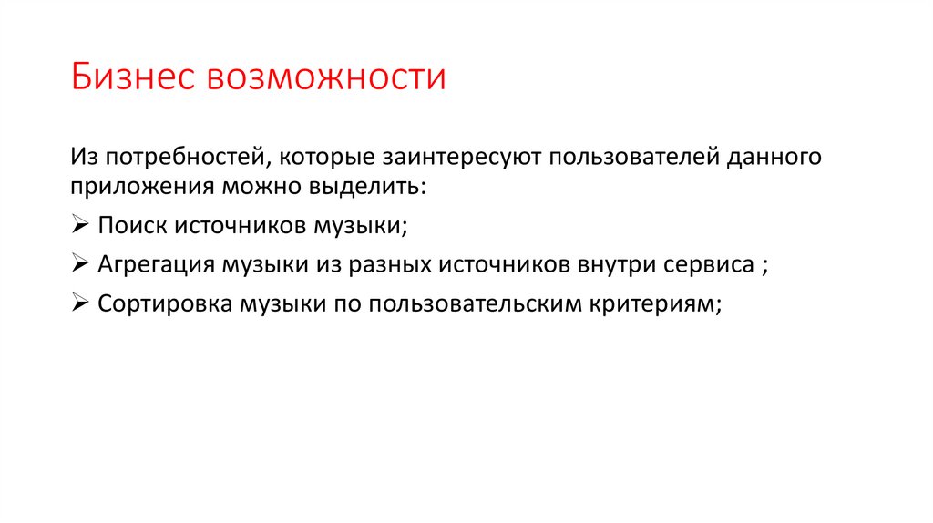 Бизнес возможностиИз потребностей, которые заинтересуют пользователей данного
