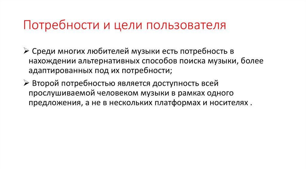 Потребности и цели пользователяСреди многих любителей музыки есть потребность в