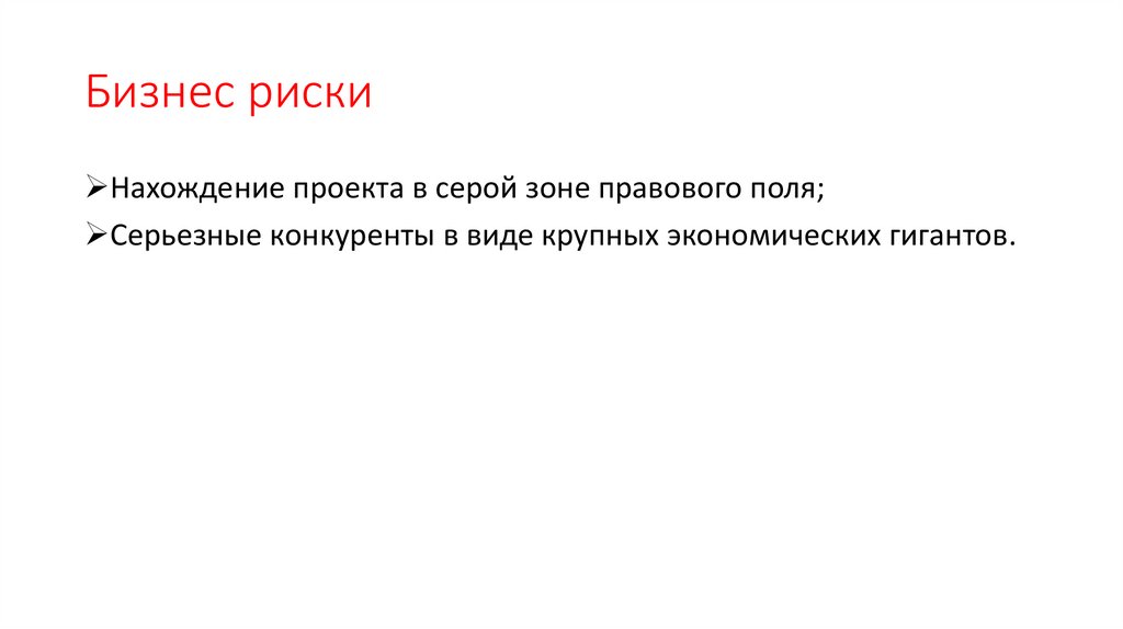 Бизнес рискиНахождение проекта в серой зоне правового поля;