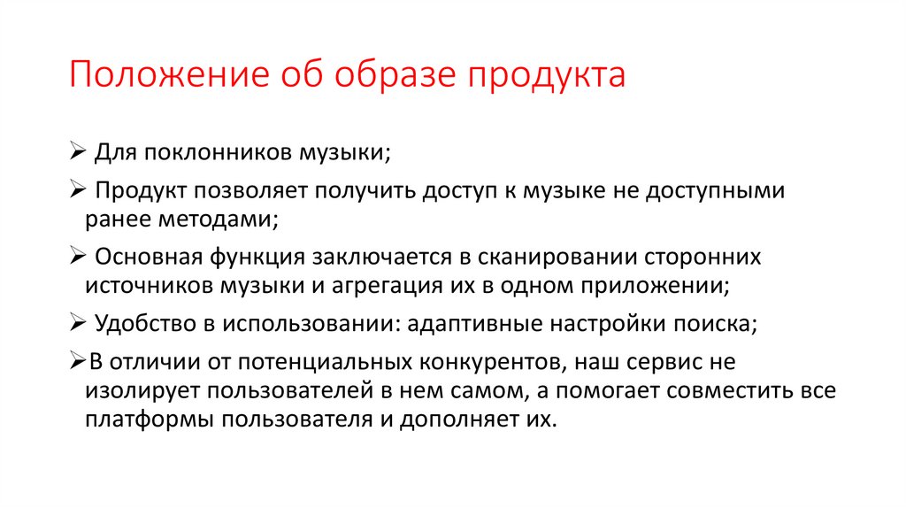 Положение об образе продуктаДля поклонников музыки;