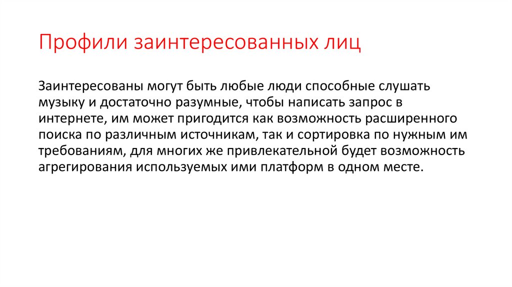 Профили заинтересованных лицЗаинтересованы могут быть любые люди способные слушать
