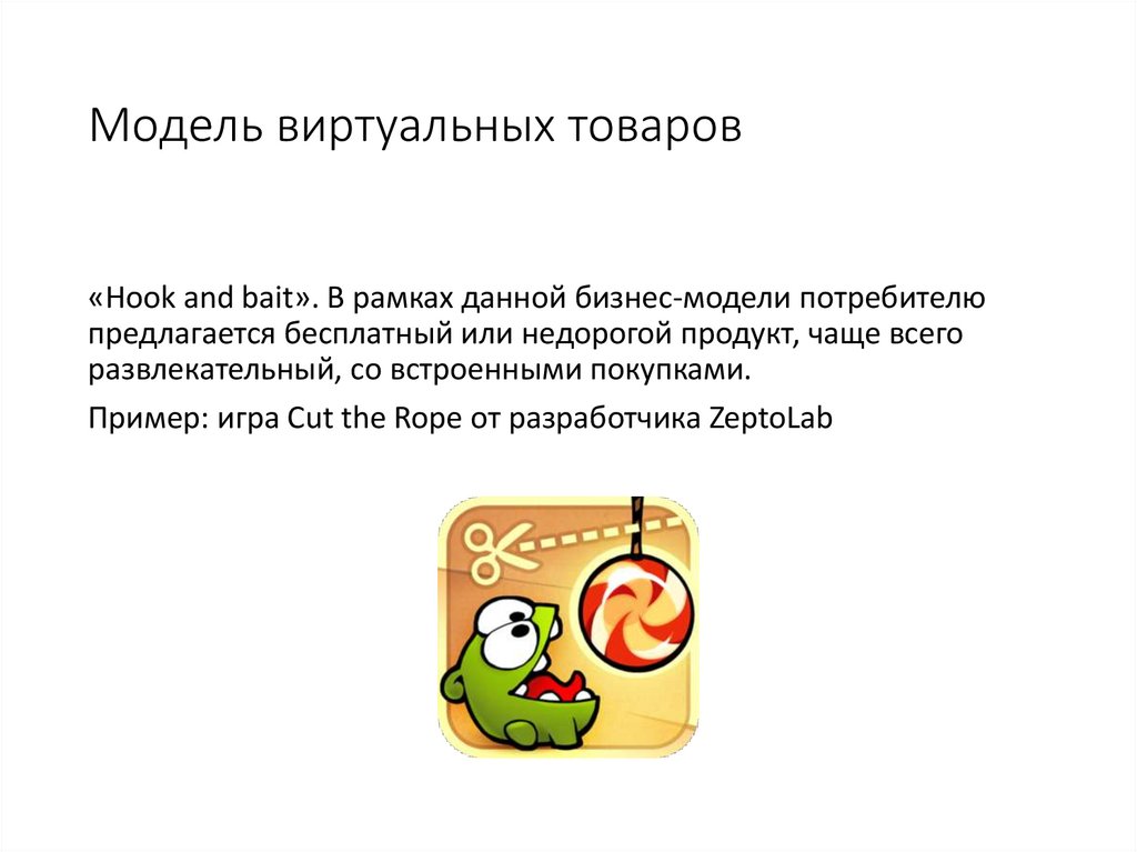Модель виртуальных товаров«Hook and bait». В рамках данной бизнес-модели потребителю