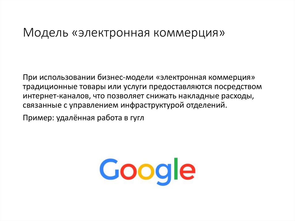 Модель «электронная коммерция»При использовании бизнес-модели «электронная коммерция»