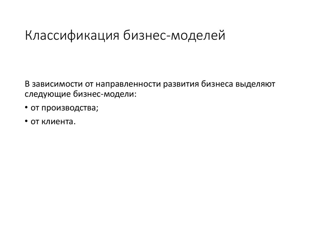 Классификация бизнес-моделейВ зависимости от направленности развития бизнеса выделяют