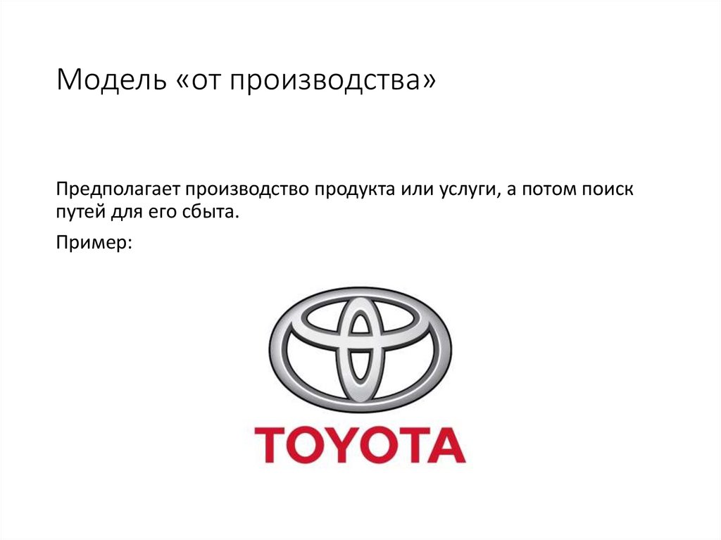 Модель «от производства»Предполагает производство продукта или услуги, а потом поиск