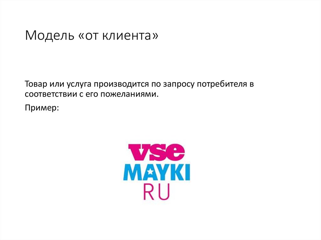 Модель «от клиента»Товар или услуга производится по запросу потребителя в