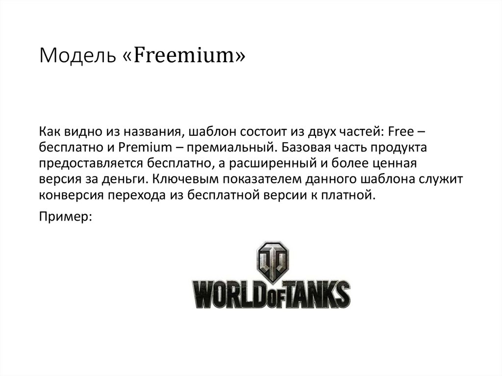 Модель «Freemium»Как видно из названия, шаблон состоит из двух частей: Free –