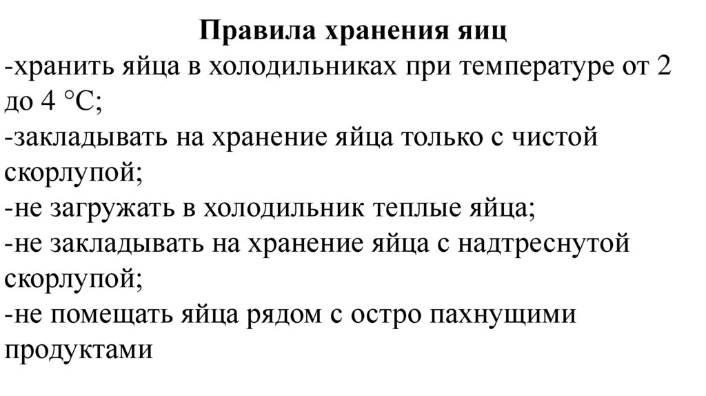 Правила хранения яиц-хранить яйца в холодильниках при температуре от 2