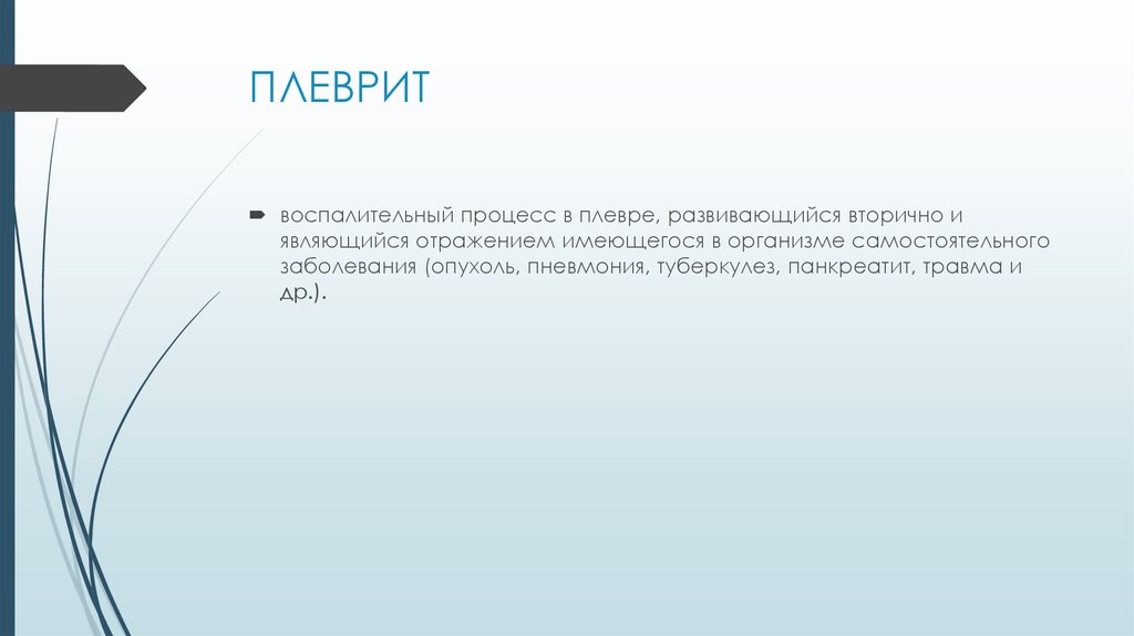 ПЛЕВРИТвоспалительный процесс в плевре, развивающийся вторично и