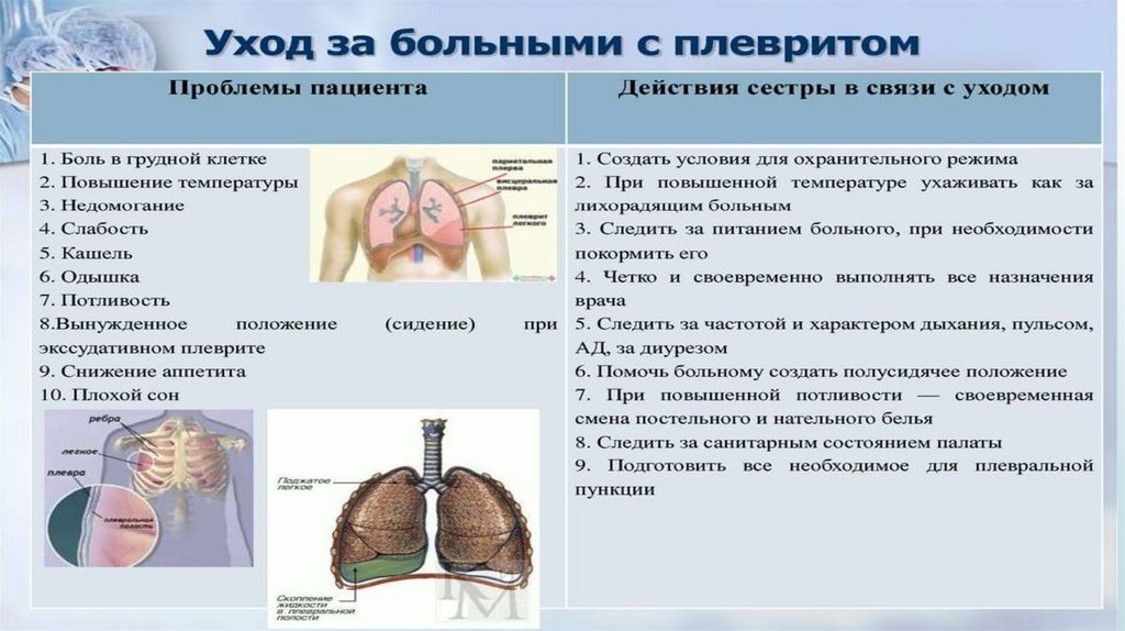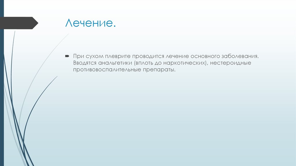 Лечение.При сухом плеврите проводится лечение основного заболевания.