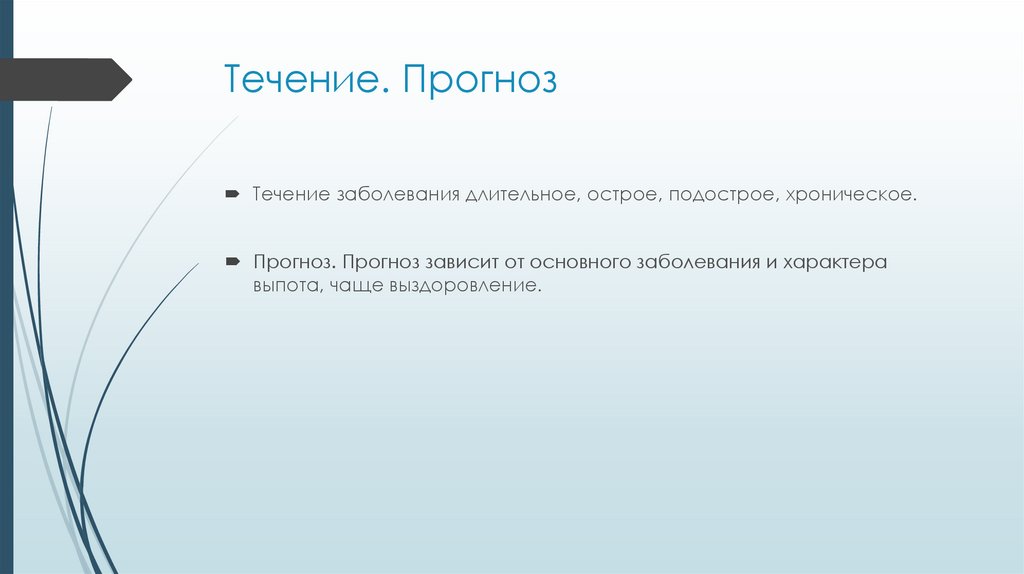 Течение. ПрогнозТечение заболевания длительное, острое, подострое, хроническое.