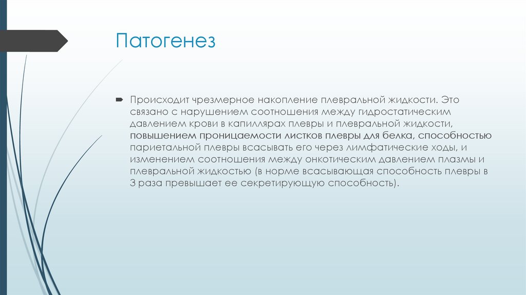 ПатогенезПроисходит чрезмерное накопление плевральной жидкости. Это