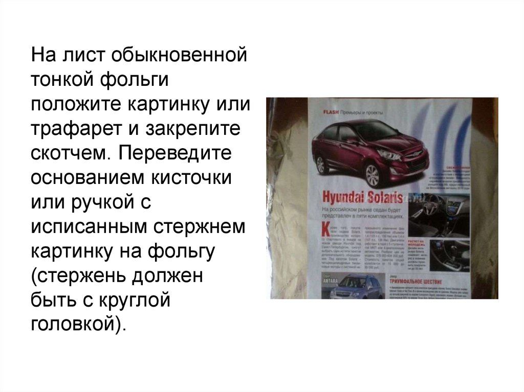 Под фольгу срисунком подложите