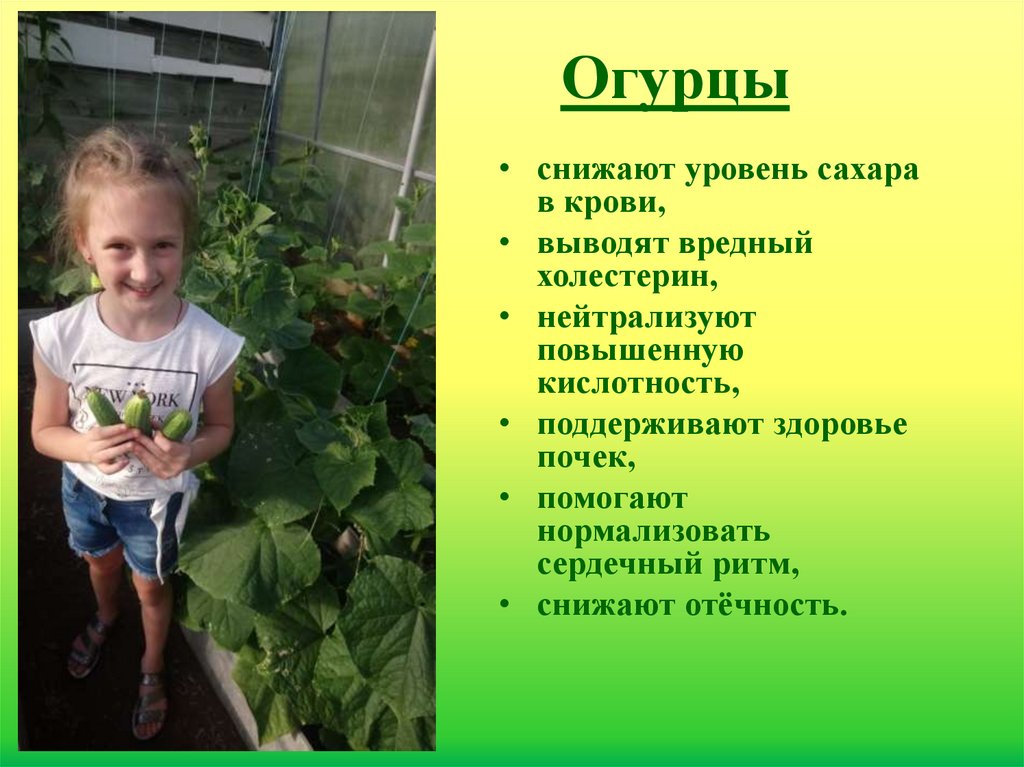 Огурцы• снижают уровень сахара