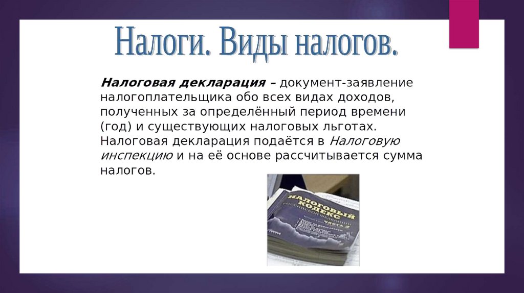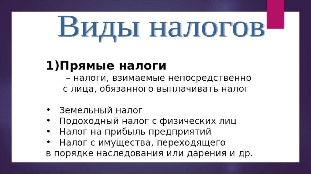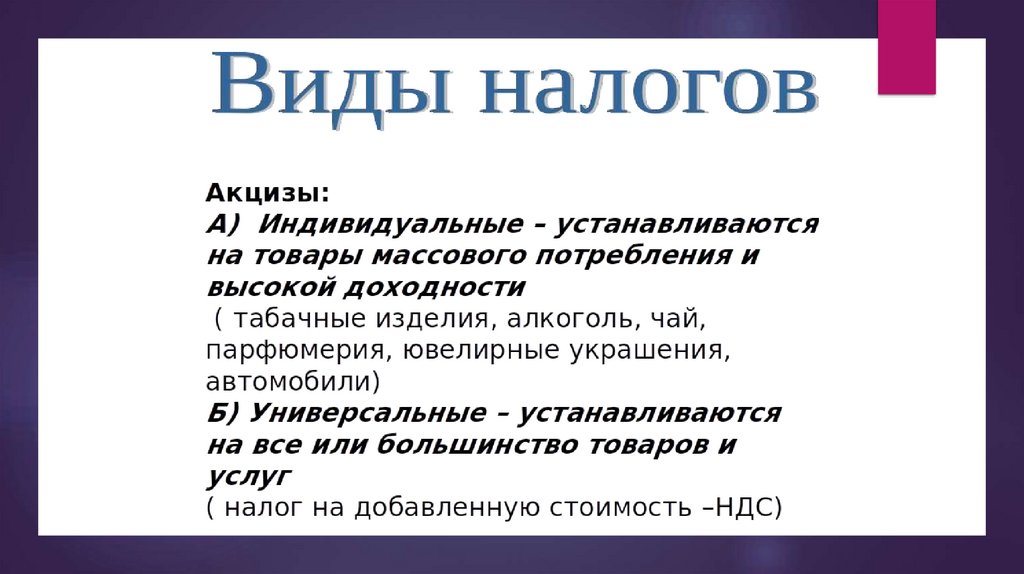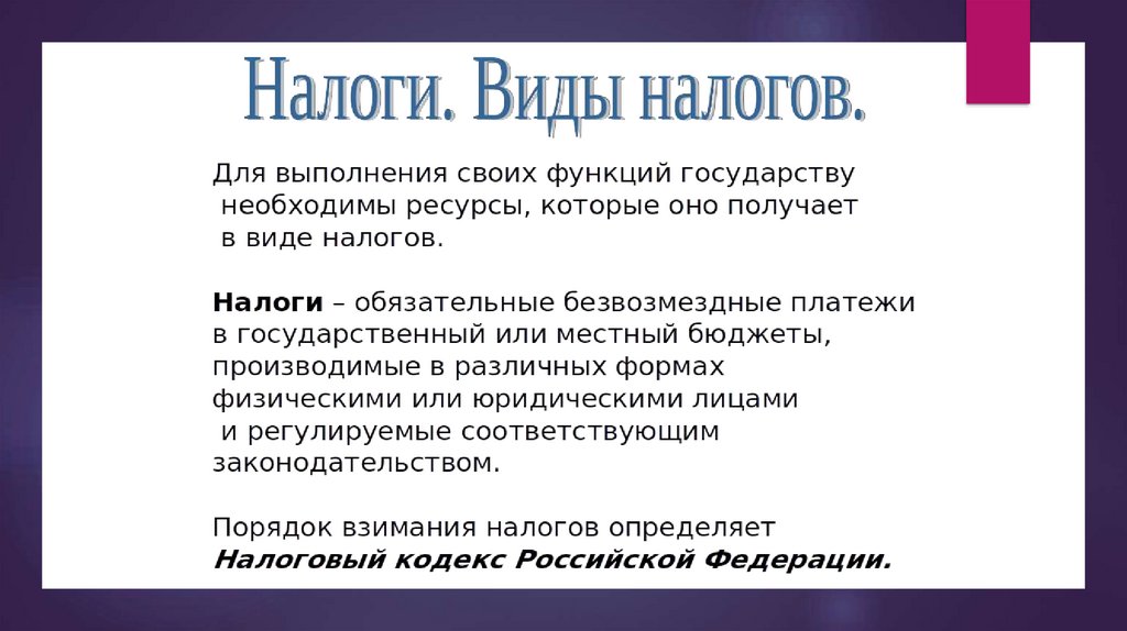 Налоги. Виды налогов