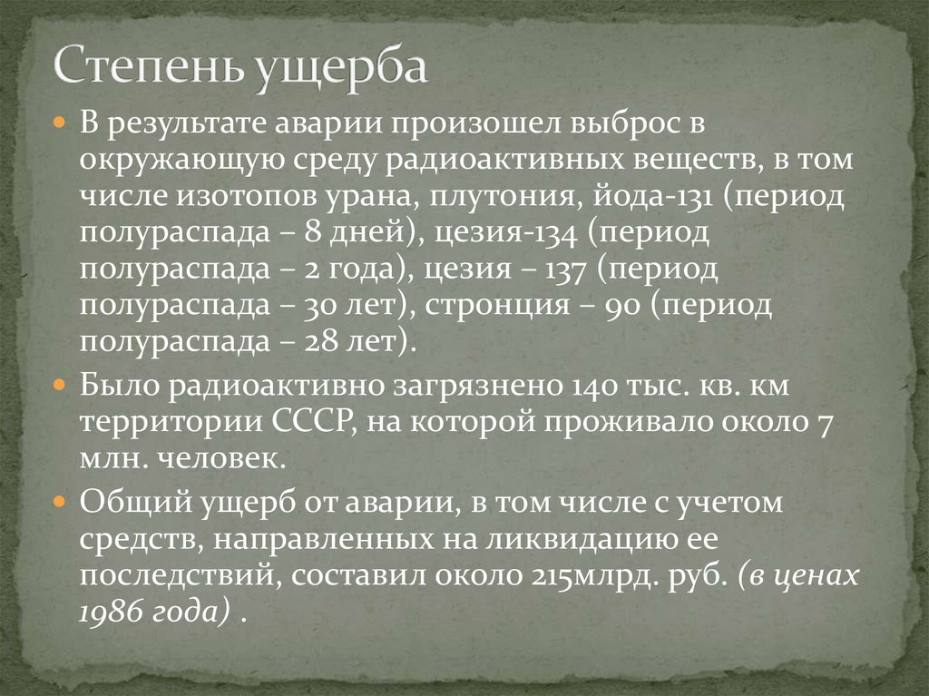 масштабам ущерба и последствиям.