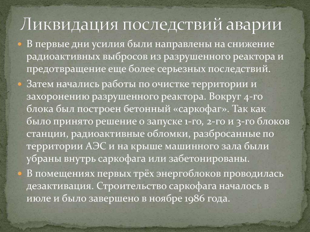 дезактивация. Строительство саркофага началось в