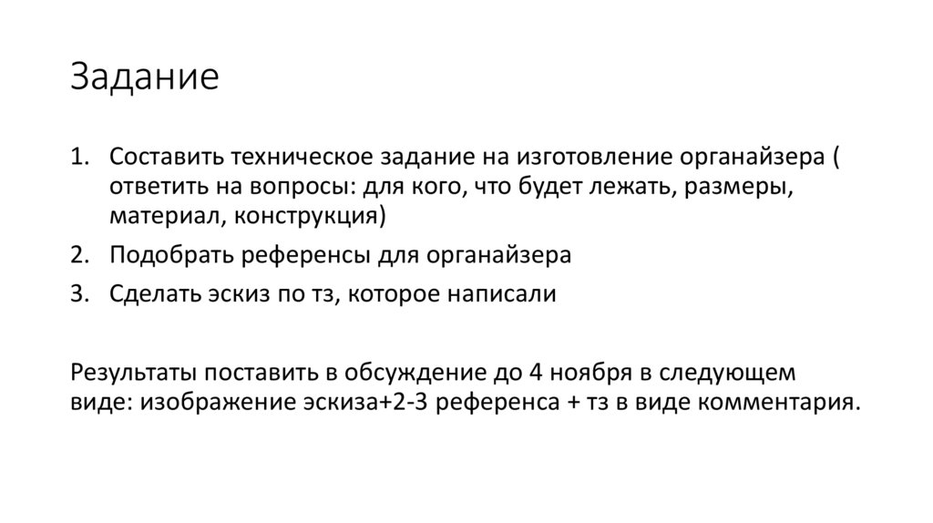 Задание1. Составить техническое задание на изготовление органайзера (