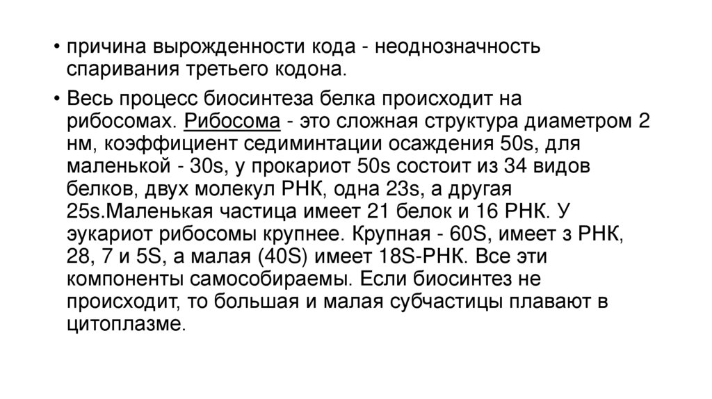 28, 7 и 5S, а малая (40S) имеет 18S-РНК. Все эти