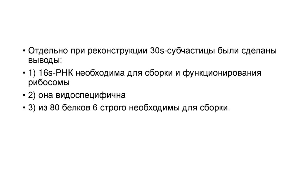 • 3) из 80 белков 6 строго необходимы для сборки.