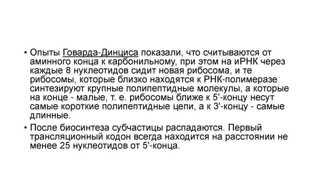 • Опыты Говарда-Динциса показали, что считываются отаминного конца к карбонильному, при этом на иРНК через