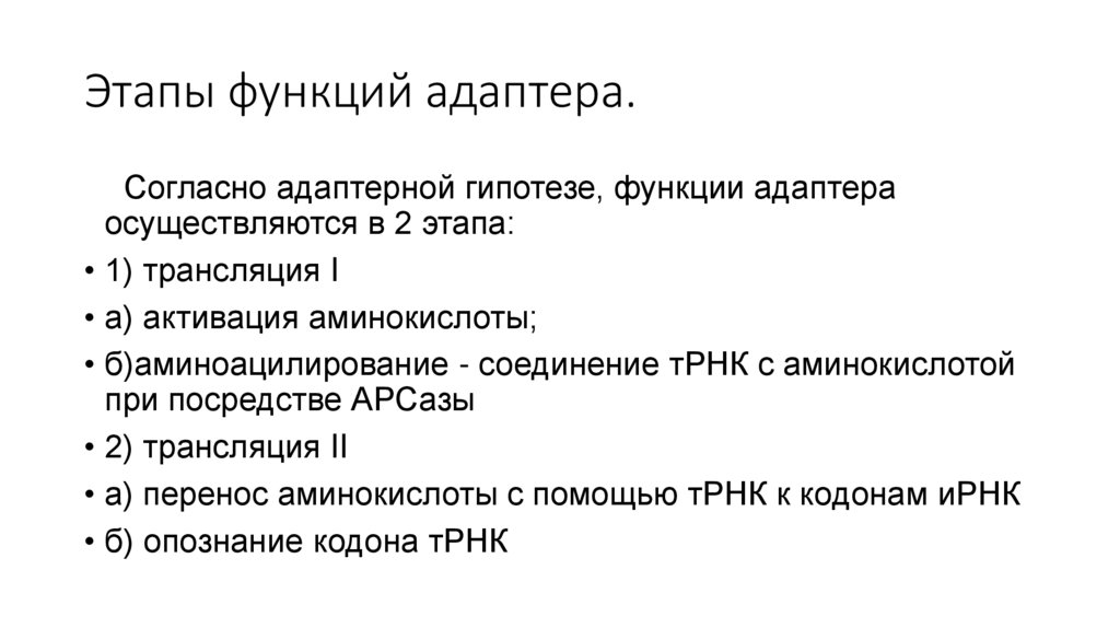 Этапы функций адаптера.• +Согласно адаптерной гипотезе, функции адаптера
