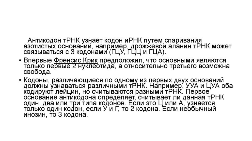 связываться с 3 кодонами (ГЦУ, ГЦЦ и ГЦА).