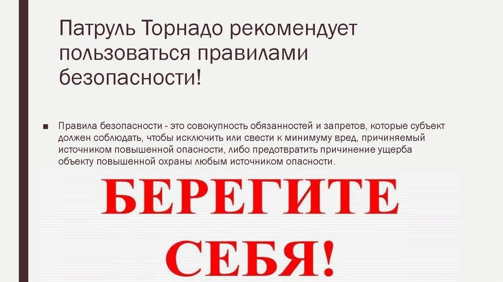 Патруль Торнадо рекомендуетпользоваться правилами