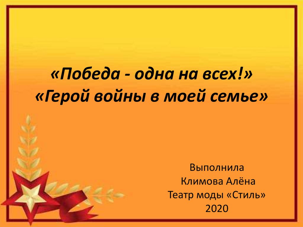 «Победа - одна на всех!»«Герой войны в моей семье»