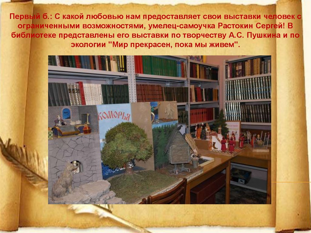 Первый б.: С какой любовью нам предоставляет свои выставки человек сограниченными возможностями, умелец-самоучка Растокин Сергей! В