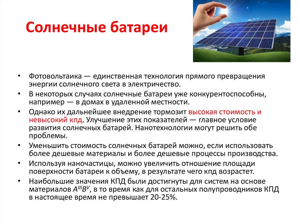 нанотехнологий в области солнечных батарей находятся на