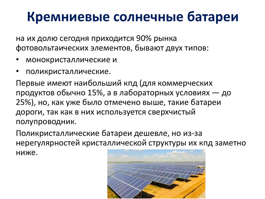 Кремниевые солнечные батареина их долю сегодня приходится 90% рынка