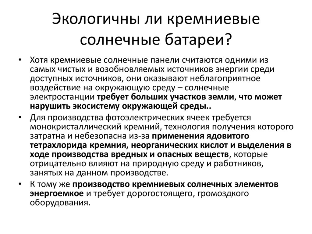 • К тому же производство кремниевых солнечных элементов
