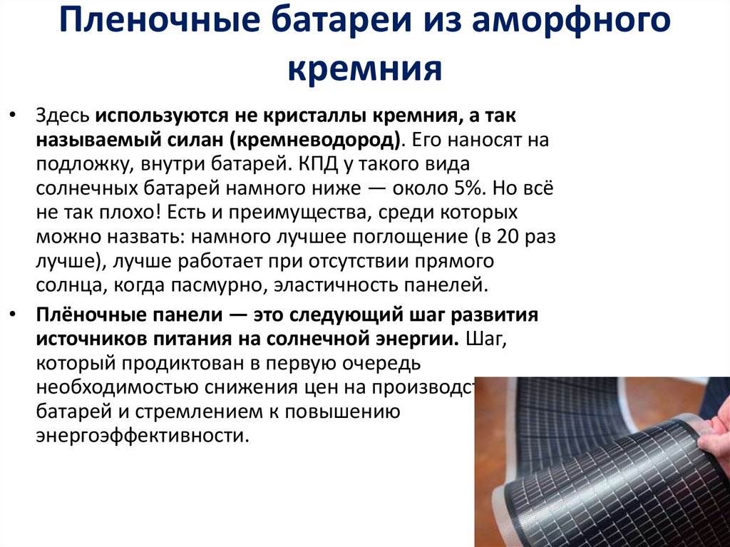 Пленочные батареи из аморфногокремния