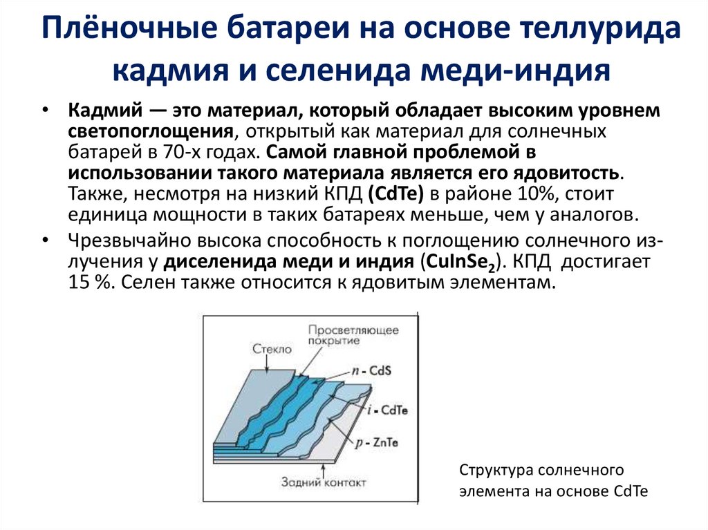 Плёночные батареи на основе теллуридакадмия и селенида меди-индия