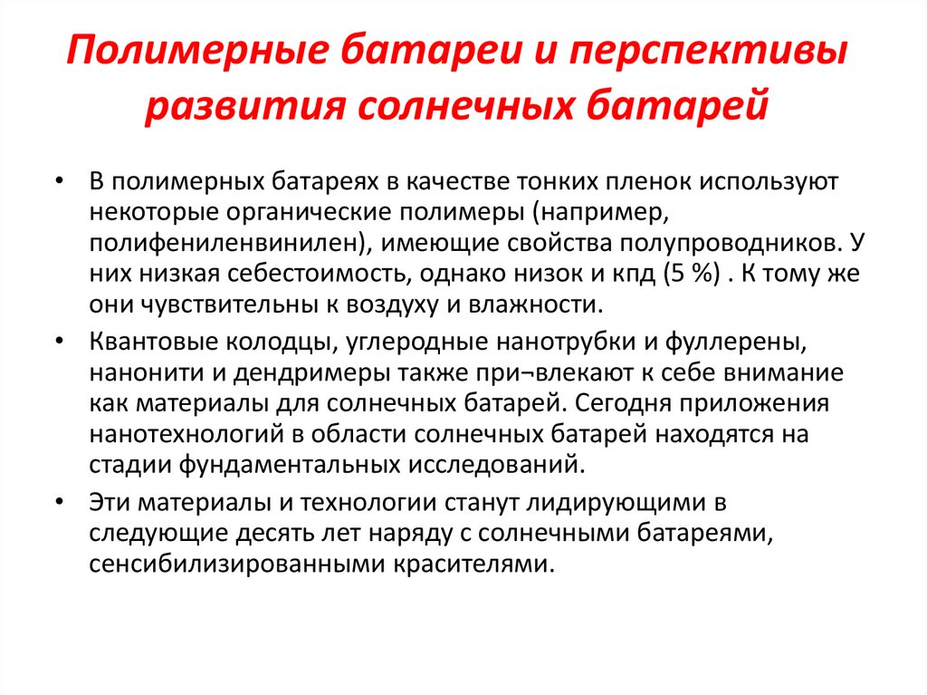 Полимерные батареи и перспективыразвития солнечных батарей