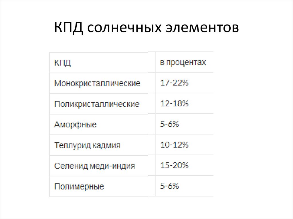 КПД солнечных элементов22.