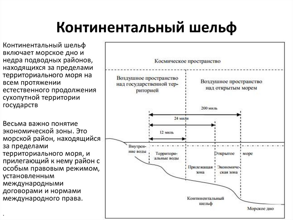 • Статус континентального шельфа тесно связан с понятием его