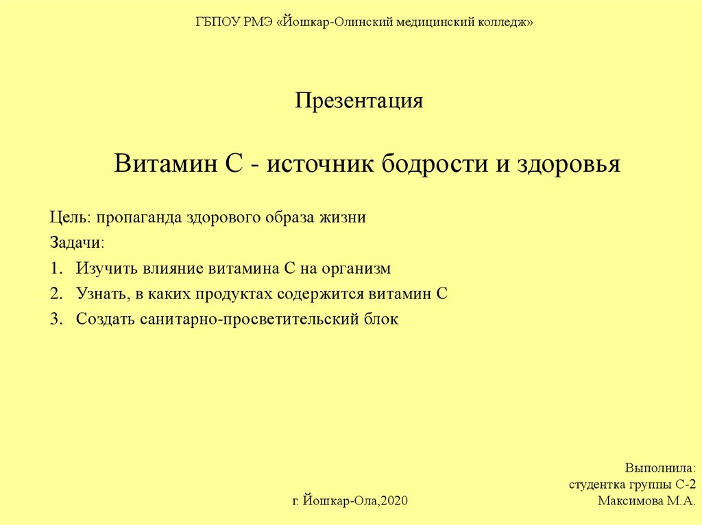 ГБПОУ РМЭ «Йошкар-Олинский медицинский колледж»Презентация