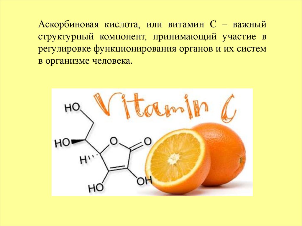 Аскорбиновая кислота, или витамин С – важныйструктурный компонент, принимающий участие в