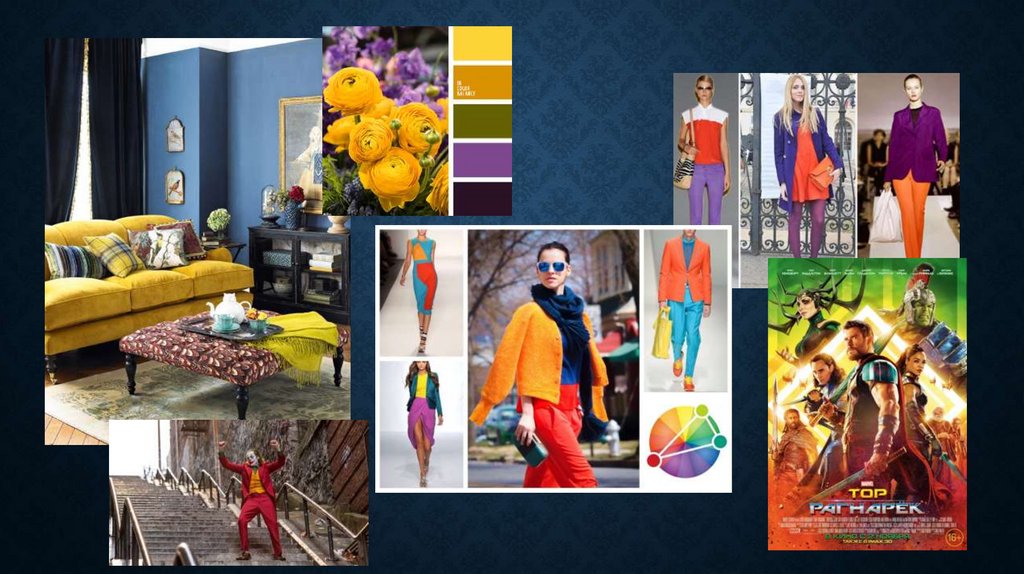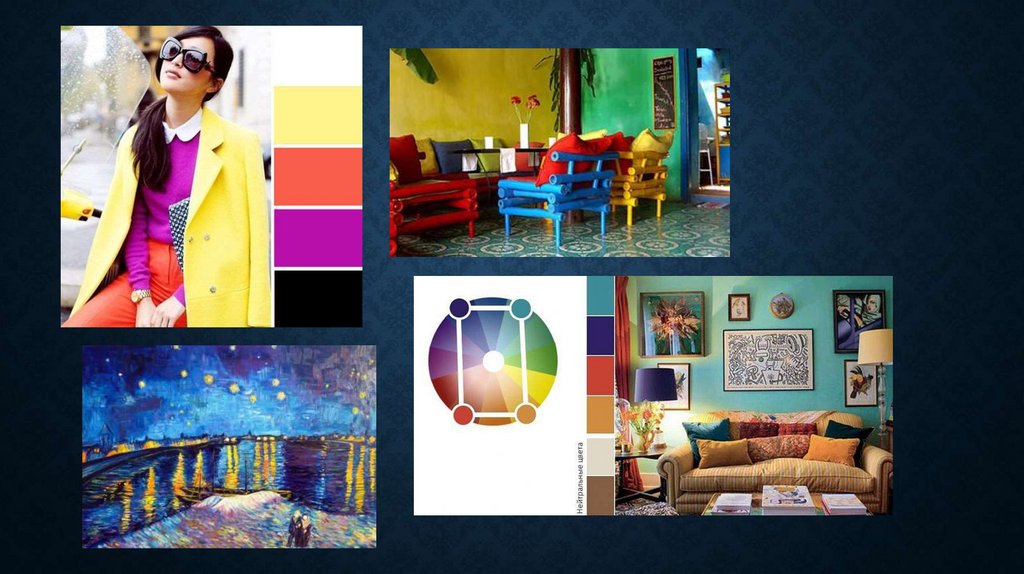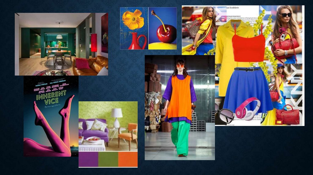 Примеры применении в интерьере родственно – контрастных сочетаний