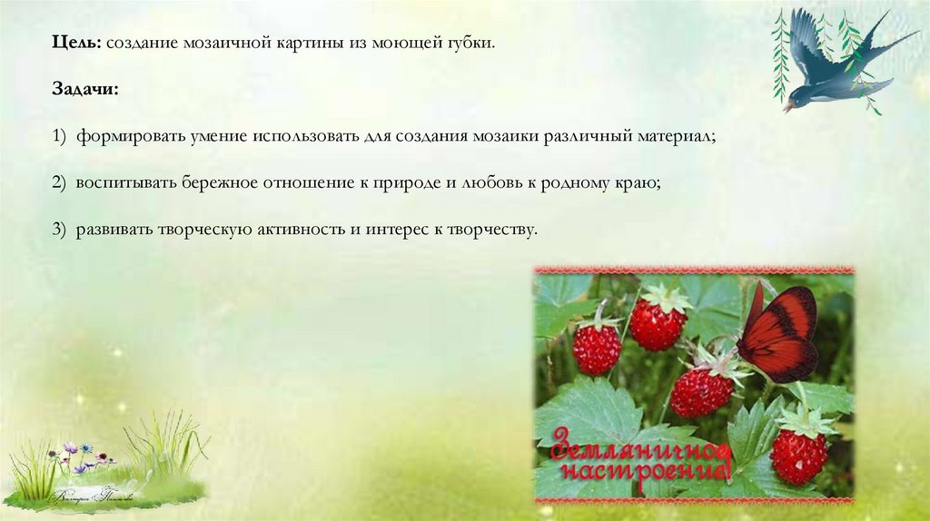 Цель: создание мозаичной картины из моющей губки.Задачи: