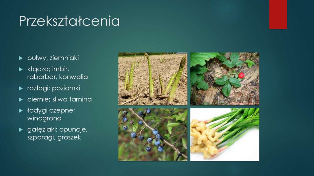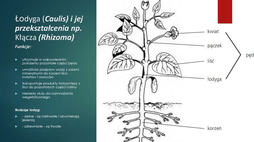 Łodyga (Caulis) i jejprzekształcenia np.